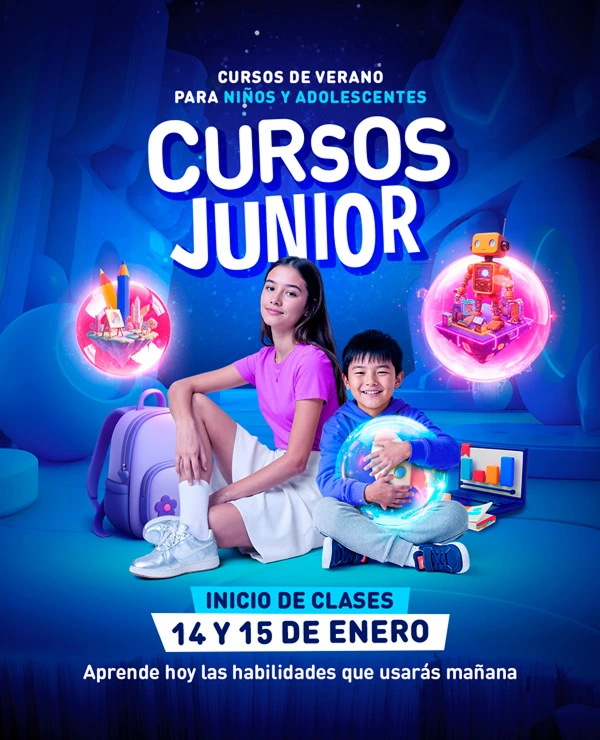 Nuestros cursos junior acompañan a niños y adolescentes a descubrir todo lo que pueden lograr. A través de experiencias prácticas en Tecnología y Negocios, aprenden, crean y desarrollan habilidades que marcarán su camino.